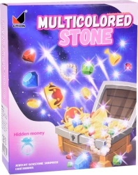 - Sadrový blok s plastovými drahokamami, kladivko, dláto, štetec