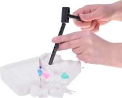 Táto kreatívna archeologická sada premení každý deň na dobrodružnú expedíciu. Deti postupne rozbíjajú sadrový blok a s pomocou nástrojov opatrne vyhrabávajú farebné plastové drahokamy. Hra je napínavá, trpezlivosť sa však vypláca – na konci ich čaká skutočný „úlovok“.