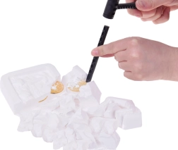 Premeňte detskú izbu na malé vykopávky. Sada obsahuje sadrový blok so skrytými plastovými mincami a tri nástroje – kladivko, dlátko a štetec. Deti najprv opatrne odsekávajú sadru a potom jemne zmietajú prach, aby objavili svoj „poklad“.