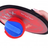 Povrch terčov pokrytý suchým zipsom umožňuje jednoduché chytanie loptičky. Ergonomická rukoväť zabezpečuje pohodlné uchytenie, aj pre detské ruky.
