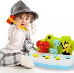 Táto farebná hra zaujme malých hráčov tým, že kombinuje radostnú zábavu s rozvojom dôležitých zručností, ako sú reflexy, pohybová koordinácia a koncentrácia. Úlohou je trafiť priloženým kladivkom malé figúrky zvierat, ktoré sa náhodne objavujú z otvorov – nielenže to deťom prináša veľkú zábavu, ale tiež stimuluje ich pohotovosť a zrýchľuje reakcie.