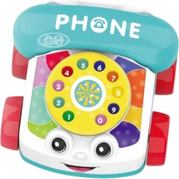 Telefón je vybavený rotujúcim číselníkom, farebnými prvkami a usmievavou tvárou, čo láka dieťa k interakcii a objavovaniu sveta zvukov, tvarov a pohybu. Pohyblivé súčasti, ako je číselník alebo kolieska, stimulujú zvedavosť dieťaťa a povzbudzujú k aktívnemu skúmaniu.