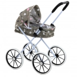 Šedý materiál kočíka, zdobený kontrastnými bielymi a ružovými hviezdičkami, priťahuje pozornosť dieťaťa a inšpiruje k vytváraniu fantastických scenárov hier. Dieťa sa môže vžiť do rôznych rolí – opatrovateľky, mamičky, pestúnky či staršej sestry – čo podporuje ich emocionálny rozvoj, predstavivosť a tvorivé myslenie.