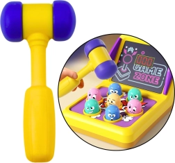 Automat je vybavený digitálnym displejom pre sledovanie skóre počas hry, čo pridáva prvok súťaže a motivuje deti k lepším výkonom. Hra je napájaná z batérií, čo umožňuje zapnutie veselých svetelných a zvukových efektov, ktoré zvyšujú zaujatím a rozmanitosť hry. Súčasťou balenia je bezpečné, ľahké kladivo ideálne prispôsobené detským rukám, aby bola hra nielen vzrušujúca, ale aj úplne bezpečná.