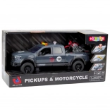 Veľký model pickupu s motorkou je hračka navrhnutá pre najmladších nadšencov automobilizmu. Pickup má otváracie dvere a zadnú klapu, čo uľahčuje nakladanie motorky a pridáva autentický vzhľad. Deti si môžu hrať na záchranné misie alebo terénne preteky vďaka možnosti umiestnenia a sňatia motorky z paku pickupu.