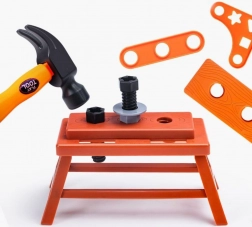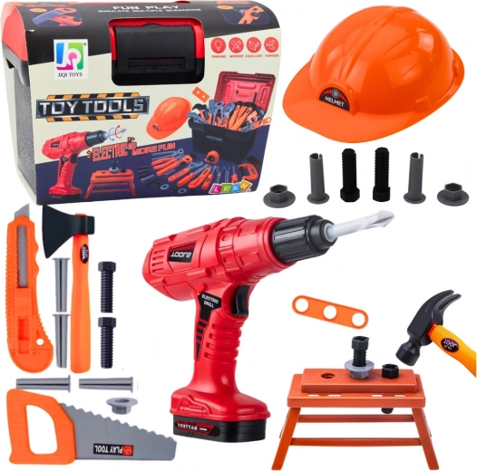 Detská sada náradia umožňuje malým majstrom bezpečne sa hrať s nástrojmi, ktoré vyzerajú ako skutočné. Elektrická vŕtačka na batérie má vymeniteľné koncovky – plochú, krížovú a vŕtaciu bitu. Okrem toho je súčasťou sady aj pracovná lavička a ochranná prilba pre ešte väčšiu realistickosť pri hre.