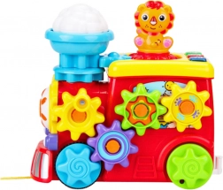 Interaktívna lokomotíva je navrhnutá tak, aby nielen zabávala, ale aj rozvíjala jemnú motoriku, zrakovo-pohybovú koordináciu a zvedavosť vášho dieťaťa. Lokomotíva je vybavená točiacimi sa ozubenými kolesami, ktoré dieťa môže uvádzať do pohybu, čo podporuje rozvoj presných pohybov rúk a učí základné mechanické vzťahy. Pritlačením tlačidiel sa aktivujú svetelné a zvukové efekty, stimulujúce sluch a zrak dieťaťa.