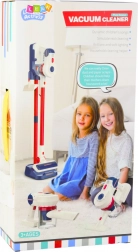 Stojaci vysávač má výšku približne 70 cm, čo je ideálne a pohodlné pre detskú postavu. Vysávač je vyrobený z odolných materiálov, vhodný na použitie doma, v škôlkach alebo ako vzdelávací darček.