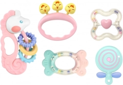 V zložení setu sa nachádza 5 rôznych prvkov, ktoré fungujú ako hryzátka aj hrkálky. Vďaka rôznym tvarom, farbám a textúram sa dieťa učí rozpoznávať zvuky, tvary a materiály, zároveň rozvíja svoju koordináciu zraku a pohybu a tiež zmysly dotyku, sluchu a zraku. Ergonomický tvar a ľahkosť prvkov umožňujú dieťaťu ľahko uchopiť a držať hračku v rukách.
