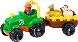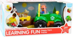 Hračka je vybavená tromi rôznymi melódiami a počas jazdy blikajú predné svetlá traktora, čo ďalej priťahuje pozornosť dieťaťa. Traktor sa pohybuje hladko a bez problémov ťahá príves, na ktorom sú špeciálne označené miesta pre figúrky zvierat. Každé zvieratko pasuje len na jedno miesto a jeho správne umiestnenie aktivuje odpovedajúci zvuk. Ide o skvelý spôsob, ako rozvíjať logické myslenie, asociácie a učenie zvukov zvierat.