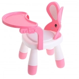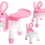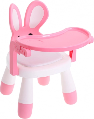 Táto multifunkčná stolička s motívom zajačika premení každé jedenie aj zábavu na príjemný rituál. Odnímateľný ružový stolík poslúži na kŕmenie, kreslenie aj stavanie kociek, zatiaľ čo ergonomické operadlo s ušami podporí správne a pohodlné sedenie.