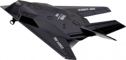 Čierny vojenský stíhač je perfektná hračka pre všetkých malých fanúšikov letectva. S modelom odráža sofistikovaný dizajn a realistické detaily, vrátane autentických nápisov vzdušných síl. Stíhač je vybavený zadným pohonom, ktorý umožňuje jeho automatické posúvanie po podlahe po ľahkom natižení.