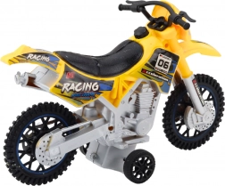 Táto motorka je vyrobená z odolného plastu, ktorý zvláda intenzívne hranie. Žltá farba a závodné nálepky dodávajú atraktívny vzhľad, zatiaľ čo veľké terénne kolesá poskytujú stabilitu na nerovných povrchoch.