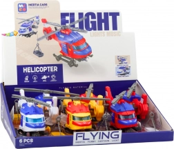 Záchranárska sada obsahuje nosidlá, ktoré sa môžu zavesiť na špeciálny hák s navijakom. Vďaka tomu môže dieťa hrať rolu záchranára a simulovať napínavé scény záchranných misií. V balení nájdete 6 jednotlivých helikoptér, farba je vyberaná náhodne.