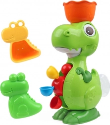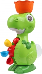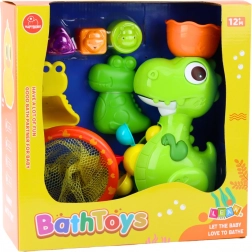 Zoznámte sa so zeleným dinosaurom, ktorý je hlavnou atrakciou tejto súpravy. Doprevádzajú ho rôzne farebné doplnky, ako je sieťka na chytanie a súprava plávajúcich hračiek rôznych tvarov a textúr, ktoré môžu deti chytať a prelivať cez ne vodu.