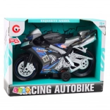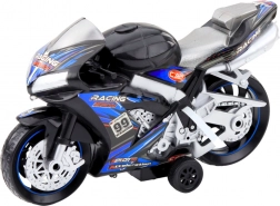 Čierno-modrá motorka je vyrobená z odolného plastu, ktorý je zabezpečený proti poškodeniu, a je vybavená silnými kolesami pre bezpečnú jazdu na rôznych povrchoch. Po stlačení tlačidla sa aktivujú zvukové a svetelné efekty realistické zvuky motora a svetelná show zabezpečia nezabudnuteľný zážitok.