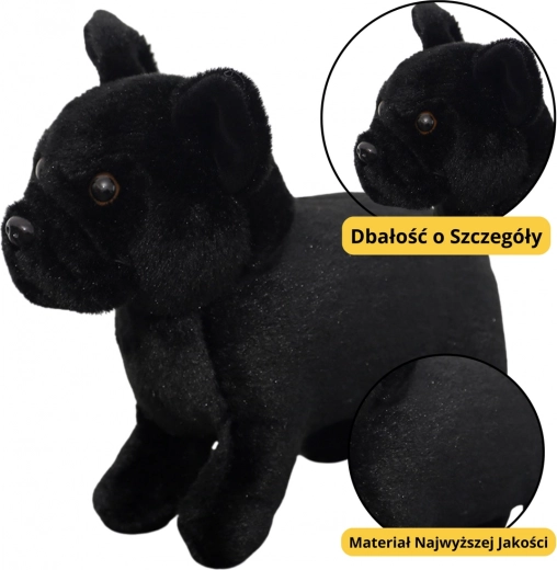 Čierny plyšový psík vyniká svojim milým výrazom tváre, stojacimi uškami a stabilnou konštrukciou, ktorá ho robí realistickým a očarujúcim. Vďaka kompaktným rozmerom sa ľahko zmestí do detských rúk, čo umožňuje jednoduché nosenie, maznanie alebo umiestnenie do postieľky. Je skvelým spoločníkom pri spánku, každodenných hrách či ako dekoratívny prvok v detskej izbe.