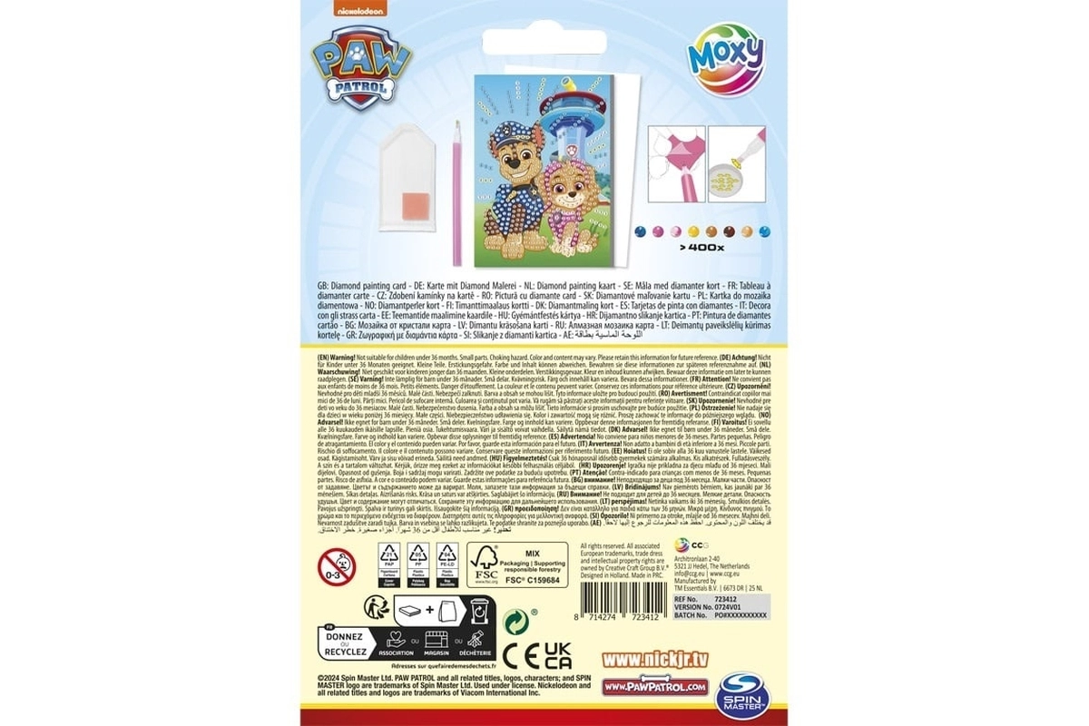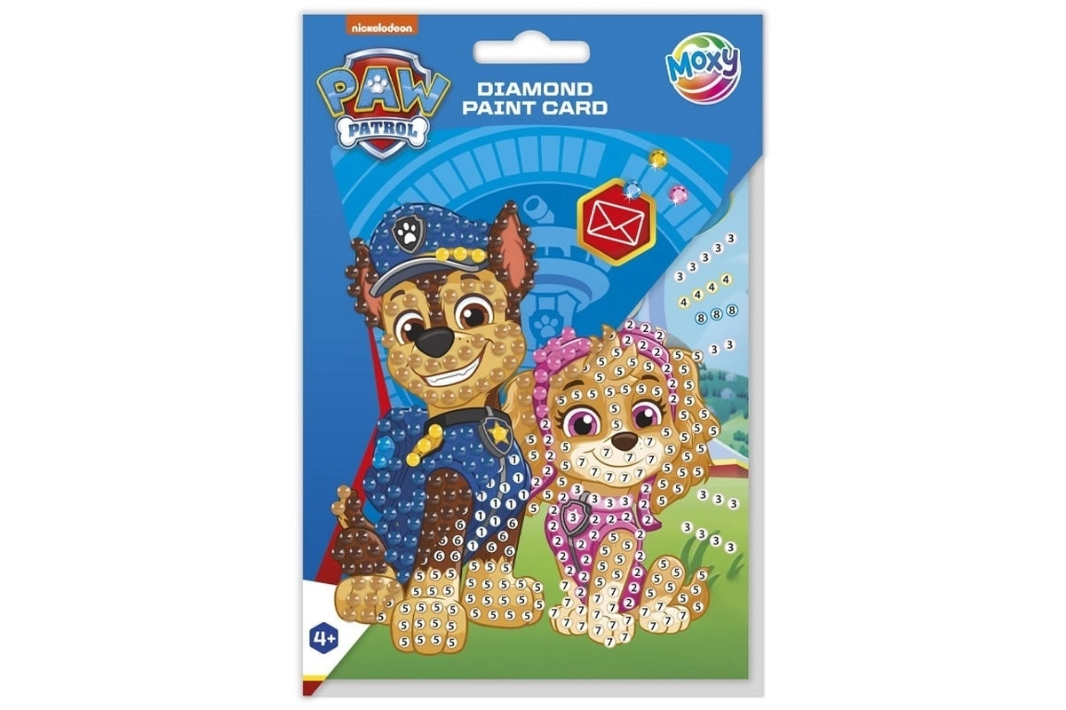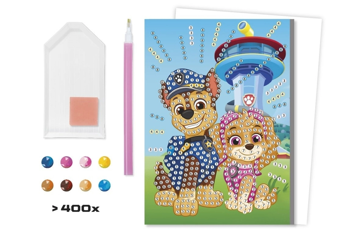 Vytvorte si vlastný trblietavý obrázok s obľúbenými hrdinami z PAW PATROL. Táto sada je ideálna pre deti a začiatočníkov – väčšie diamanty sa ľahko uchopujú a presne umiestňujú na predtlačený podklad. Hotové dielko môžete darovať alebo uložiť do priloženej obálky.
