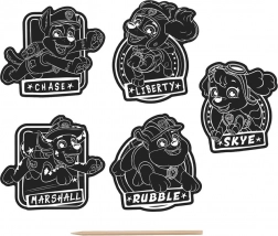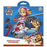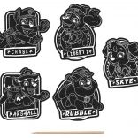 Vytvor si vlastnú kolekciu samolepiek s motívmi TLAPKOVÁ PATROLA. Stačí jemne zoškrabať čiernu vrstvu a postupne odhalíš živé farby a detaily jednotlivých postavičiek. Hotové motívy sú samolepiace, takže ich môžeš ihneď použiť na zdobenie školských potrieb, darčekov či prianíčok.