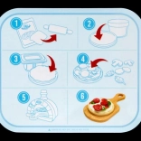 Súčasťou je aj jednoduchá obrazová karta s receptom, ktorá pomáha deťom nasledovať základné vizuálne inštrukcie. Vďaka znovupoužiteľnému modelovaciemu materiálu môžu malí kuchári skúšať stále nové kombinácie surovín a vytvárať svoju vysnívanú pizzu.