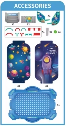 Model je typu DIY – dosku si dieťa jednoducho poskladá samo, čo rozvíja jemnú motoriku a samostatnosť. Dve varianty rozloženia prekážok prinášajú čerstvú výzvu pri každej hre, či už hráte sami, alebo organizujete miniturnaj s kamarátmi.