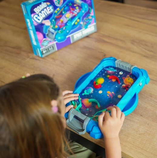 Objavte čaro pinballu v detskom podaní. Táto stolová hra s vesmírnym motívom od značky WOOPIE pripomína skutočný flipper – s odpaľovačom, páčkami a bodovanými cieľmi. Vďaka jednoduchým pravidlám sa do hry ľahko zapoja aj mladšie deti a môžu trénovať presnosť, postreh a plánovanie.