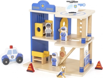Troposchodová policajná stanica VIGA je navrhnutá pre malých policajtov od 3 rokov. Pevná drevená konštrukcia s modrými detailmi ponúka ľahký prístup ku všetkým úrovniam a umožňuje deťom realisticky zahrať zásahy, prenasledovanie aj zadržanie páchateľa. Vďaka heliportu, cele a strelnici získava hra nové rozmery.