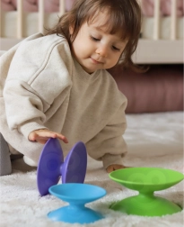 Skladanie a spúšťanie kotúčov po špirále podporuje úchop, presnosť pohybov i koordináciu ruka–oko u detí už od 10 mesiacov.