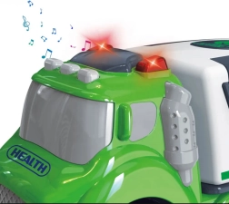 City Truck Popelársky voz je perfektná hračka pre každého malého fanúšika motorizmu a mestských špeciálnych vozidiel. Popelársky voz je vybavený realistickými zvukovými a svetelnými efektmi, ktoré sa aktivujú stlačením tlačidla na streche vozidla.
