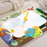 Veľká vodná podložka s motívom dinosaurov premení podlahu na kreatívny ateliér. Kreslenie prebieha iba vodou – bez škvŕn, bez zápachu a bez starostí. Akonáhle voda vyschne, čmáranice zmiznú a plocha je opäť pripravená na ďalšie nápady.