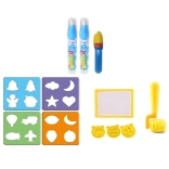 Sada obsahuje vodné fixky, pečiatky, valček, šablóny a vaničku na vodu, aby boli obrázky pestrejšie a učenie čísel aj písmen zábavnejšie.