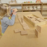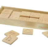 Drevený senzorický set Masterkidz je edukatívna hračka, ktorá pomáha deťom rozvíjať hmatový zmysel a precvičovať znalosť písmen, čísel a tvarov.