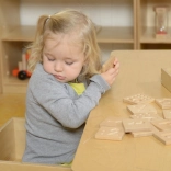 Drevená senzorická hračka Masterkidz je vybavená 40 drevenými doštičkami s vyrytými symbolmi. Úlohou detí je uhádnuť, čo je na doštičke len pomocou dotyku, bez toho aby sa na ňu pozreli. Tento set je vynikajúci pre precvičovanie rozpoznávania tvarov a učenie sa hrou. Hračka je prakticky uschovaná v drevenej krabičke, ktorá uľahčuje skladovanie.