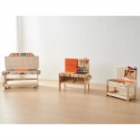 Drevený workshop STEM umožňuje kreatívnu zábavu a poznávanie sveta vedy. Deti môžu tvoriť krásne vzory pomocou farebných a geometrických kolíčkov, skrutiek a ozubených kolies. Výška stola 42,5 cm je ideálna pre deti od 3 rokov.
