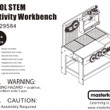 - Obsahuje stojan na nástroje pre skladovanie sady: ručné nástroje - hračka kladivo, píla, kľúč, trojuholník a drevený blok pre cvičenie a elektronický skrutkovač, vŕtačku a sadu nadstavcov.