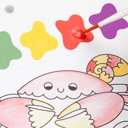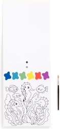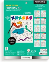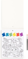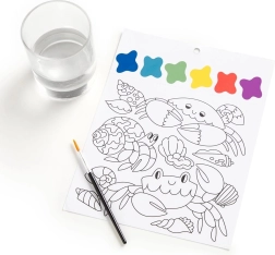Maľovacia sada obsahuje štetec a 10 predtlačených listov na vyfarbenie, každý s motívom morského života a farebnou paletkou. Stačí namočiť štetec a začať tvoriť! Každý list je navyše perforovaný, čo umožňuje ľahké oddelenie hotového obrázku.