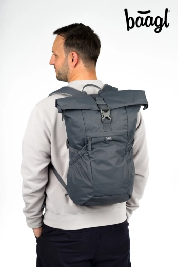Štýlový a odolný rolovací batoh BAAGL na každý deň. Ponúka ľahký dizajn 715 g, objem 29 l a nosnosť 7 kg. Vďaka polstrovaným chrbtom, podporným popruhom a vodoodolnému, rýchloschnúcemu materiálu spoľahlivo ochráni vaše veci v meste aj na cestách. Nechýba polstrované vrecko na notebook, kvalitné zipsy YKK a certifikácia GRS potvrdzujúca udržateľnosť.