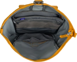 Vo vnútri nájdete prehľadne členený priestor s objemom 29 l a samostatné polstrované vrecko na notebook s vlastným bočným vstupom na zips pre rýchly prístup. Rolovacia horná časť so sponou umožňuje upraviť kapacitu podľa aktuálnych potrieb a udržať obsah bezpečne uzavretý.