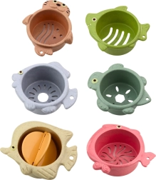 Tieto poháriky sú veľké, ľahké a ľahko uchopiteľné malými rukami, čo je skvelé pri učení sa uchopovania a manipulácie s predmetmi. Deti môžu stavať veže, vkladať poháriky jeden do druhého alebo ich používať počas kúpeľa – vďaka otvorom umožňujú prelievanie vody. Tým poháriky získavajú senzorický rozmer a perfektne fungujú aj ako kúpeľový doplnok.