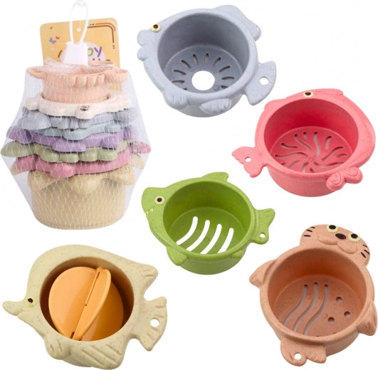 Farebné vežové poháriky do kúpeľa 2v1, pastelové, 6 ks