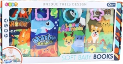 Tieto mäkké knižky sú úplne bezpečné a šetrné k citlivej pokožke dojčaťa. Každá knižka obsahuje vystupujúce prvky a šuštiace stránky, ktoré podporujú senzorický rozvoj dieťaťa — stimulujú hmat, sluch a zrak. Praktické úchyty umožňujú jednoduché pripevnenie ku kočíku alebo autosedačke. Každá knižka je tematicky odlišná: svet dinosaurov, vodných zvierat, suchozemských zvierat a farma, čo obohacuje objavovanie okolitého sveta.