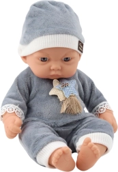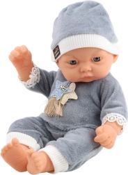 Krásna bábika bábätko v mäkkom sivom pyžamku s čiapočkou a hviezdičkovou aplikáciou je ideálna pre deti od 3 rokov. Vďaka svojej realistickej tvári, jemným detailom a dôkladne spracovanému oblečeniu láka bábika k príjemnej a prirodzenej hre.