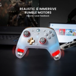 GameSir Cyclone 2 prináša špičkové ovládanie pre súťažné aj zábavné hranie. Nové páčky Mag-Res TMR spájajú presnosť a výdrž, zatiaľ čo spúšte s Hallovým efektom poskytujú mimoriadne plynulú odozvu s možnosťou režimu Hair Trigger na rýchle akcie. Vďaka 6-osovému gyroskopu si na zariadeniach SWITCH užijete presné mierenie a plynulé ovládanie pohybom.