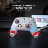 Prepojte ovládač tak, ako vám vyhovuje – 2,4 GHz pre minimálnu latenciu, Bluetooth pre rýchle spárovanie alebo kábel pre stabilitu. Asymetrické vibračné motory pridávajú realistickú haptickú odozvu a predné mikrospínače e-športovej úrovne zaručujú rýchle a isté stlačenia. Prispôsobiteľné RGB efekty a rýchle prepínanie profilov vám umožnia vyladiť ovládač presne pre vašu hru a štýl.