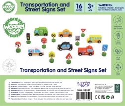 Objavte zábavnú a vzdelávaciu hru pre deti od 3 rokov: drevenú sadu vozidiel a dopravných značiek od Woopie Green. V balení nájdete 6 farebných vozidiel a 9 dopravných značiek vrátane semaforu, ktoré pomáhajú hravou formou učiť pravidlá cestnej premávky. Všetko je vyrobené z kvalitného dreva a lakované bezpečnými, netoxickými farbami so zaoblenými hranami pre maximálnu bezpečnosť.