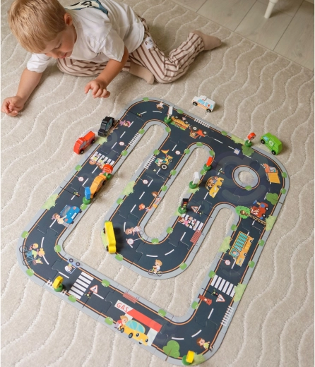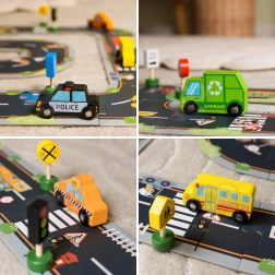 Táto drevená sada je ideálna na rozvoj jemnej motoriky, fantázie aj sociálnych zručností. Deti si môžu vytvárať vlastné mestá, scénky a situácie na ceste, učiť sa rozpoznávať vozidlá a značky a prirodzene chápať zásady bezpečného správania na ceste.