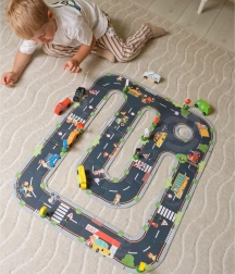 Súprava obsahuje 6 vozidiel, semafor a 8 značiek, ktoré pomáhajú deťom prirodzene osvojiť základné pravidlá cestnej premávky.