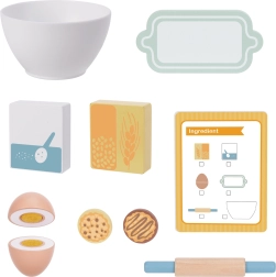 Súčasťou je kompletná sada doplnkov: misa, múka, cukor, vajce na suchý zips, valček, plech na pečenie, sušienky aj recept. Hra rozvíja kreativitu, predstavivosť, manuálne zručnosti a koncentráciu – a pritom je to zábava bez obrazovky.
