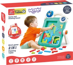 Hľadáte hračku, ktorá deti zabaví a zároveň podporí ich rozvoj? Obojstranná tabuľa WOOPIE 2v1 spája kreslenie a logické skladanie do jednej atraktívnej sady. Deti môžu kresliť, písať a trénovať grafomotoriku, alebo skladať farebné dieliky v štýle Tetris a vytvárať plošné aj 3D obrazce. Zabudované tlačidlá so zvukmi (hudba, pesničky, dobré návyky, rozprávky) podporia zábavu a motiváciu.
