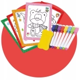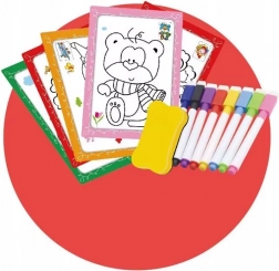 Súčasťou je všetko, čo je potrebné na okamžité hranie: 8 suchých fixiek, stieracia hubka, sada farebných kociek a 18 obojstranných kariet na opakované precvičovanie. Analógové hodiny s pohyblivými ručičkami pomôžu s výukou času. Stabilné nožičky a praktické madlo uľahčia prenášanie aj bezpečné používanie.